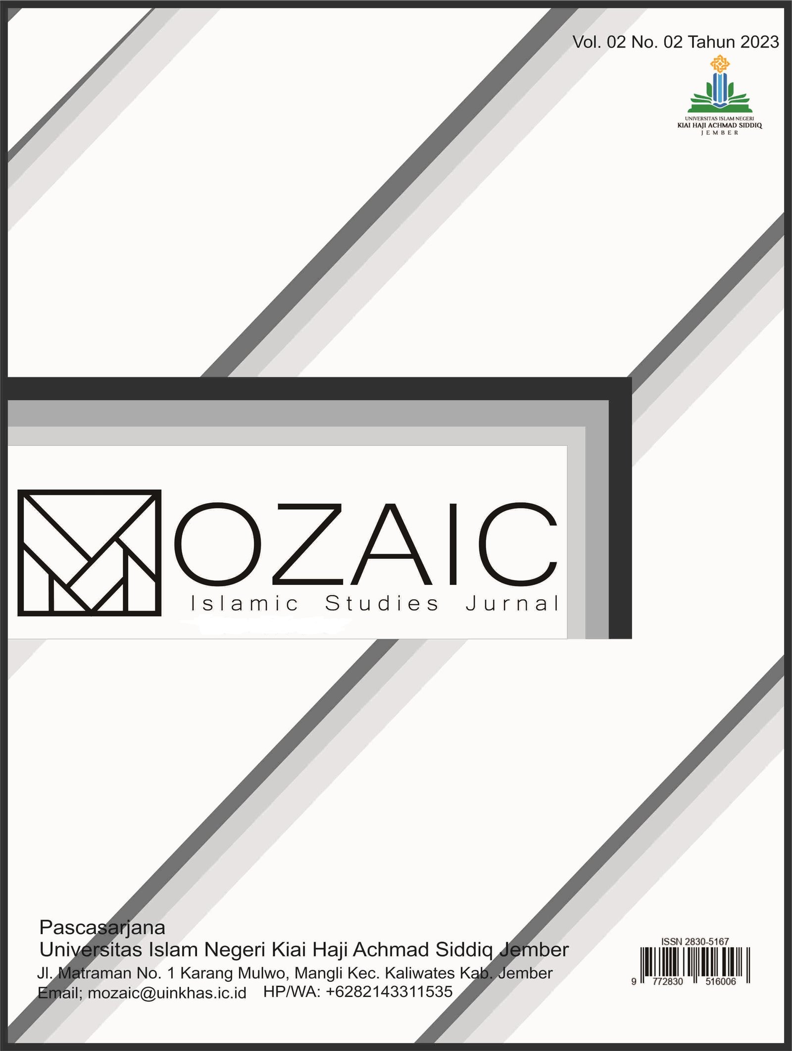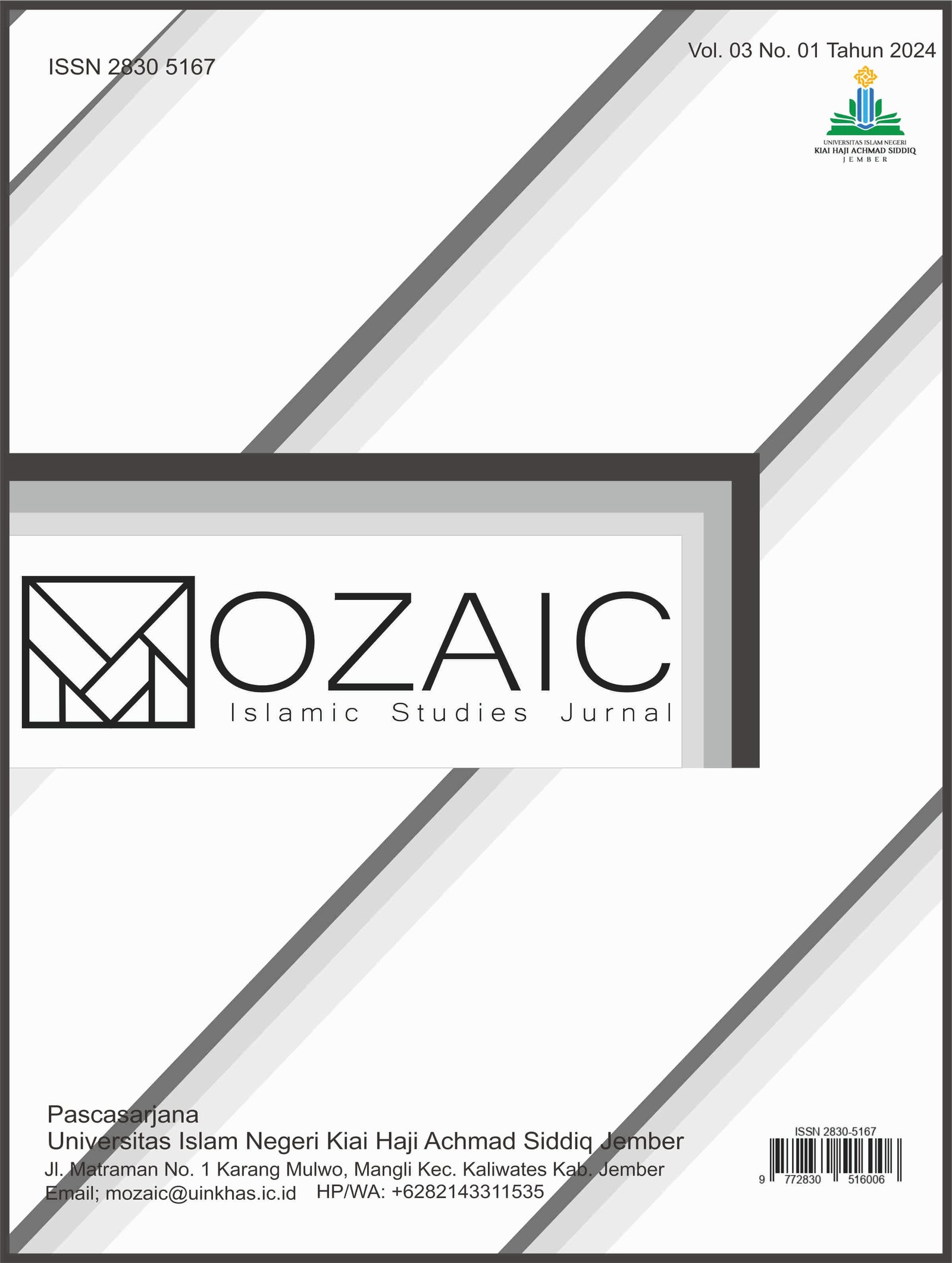 Mozaic will be managed by editors at the Postgraduate of Kiai Haji Achmad Siddiq Jember State Islamic University but has a board of distinguished international leaders, including scholars from America, Belgium, India, Singapore, Malaysia and Indonesia. will discuss important issues for scholars, students, and researchers of Islamic studies.